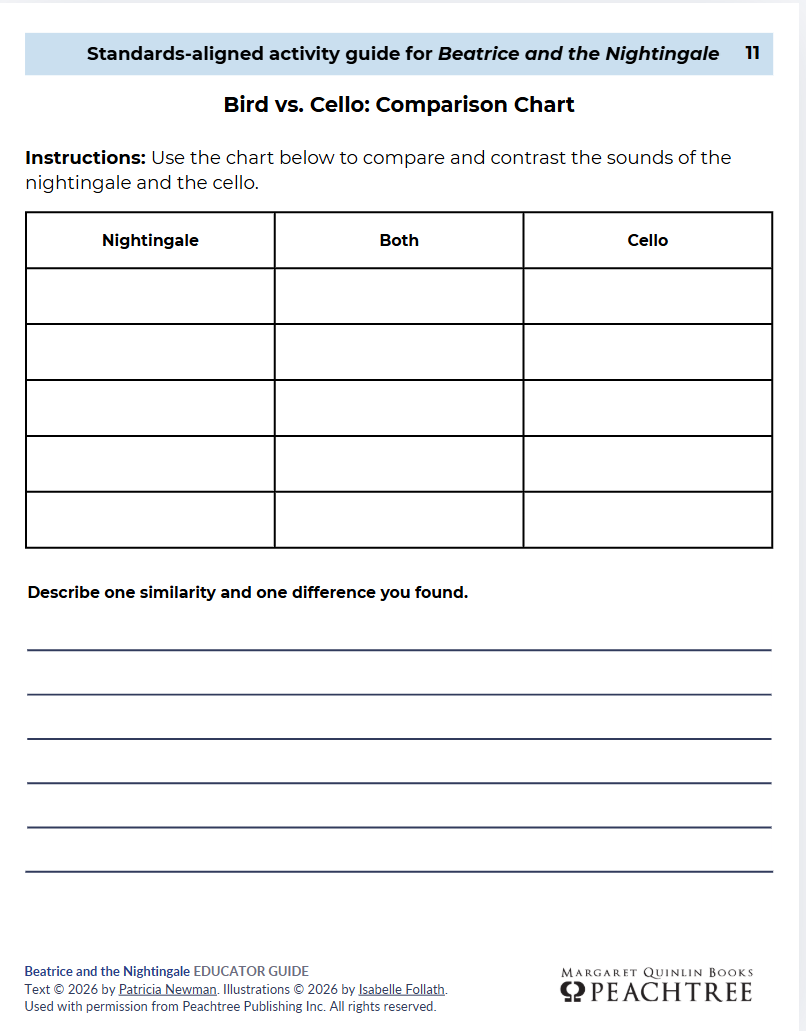 - Students will fill out the diagram comparing the nightingale and a cello (or another human-made instrument) based on aspects like sound production, purpose, and emotional impact.